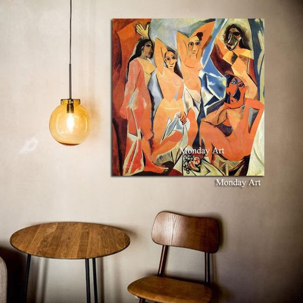 لوحة قماشية ملونة تجريدية حديثة مرسومة يدويًا للفنان الشهير بيكاسو، رسم رباعي الزوايا